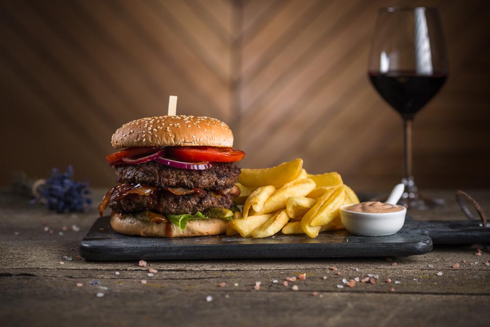 1 x Big Burger (560g) 1 x Fries - Fry’n Dip (150g) 1 x Sauce to choose (70g) 1 x Soft drink/Tuborg Beer 0.5l