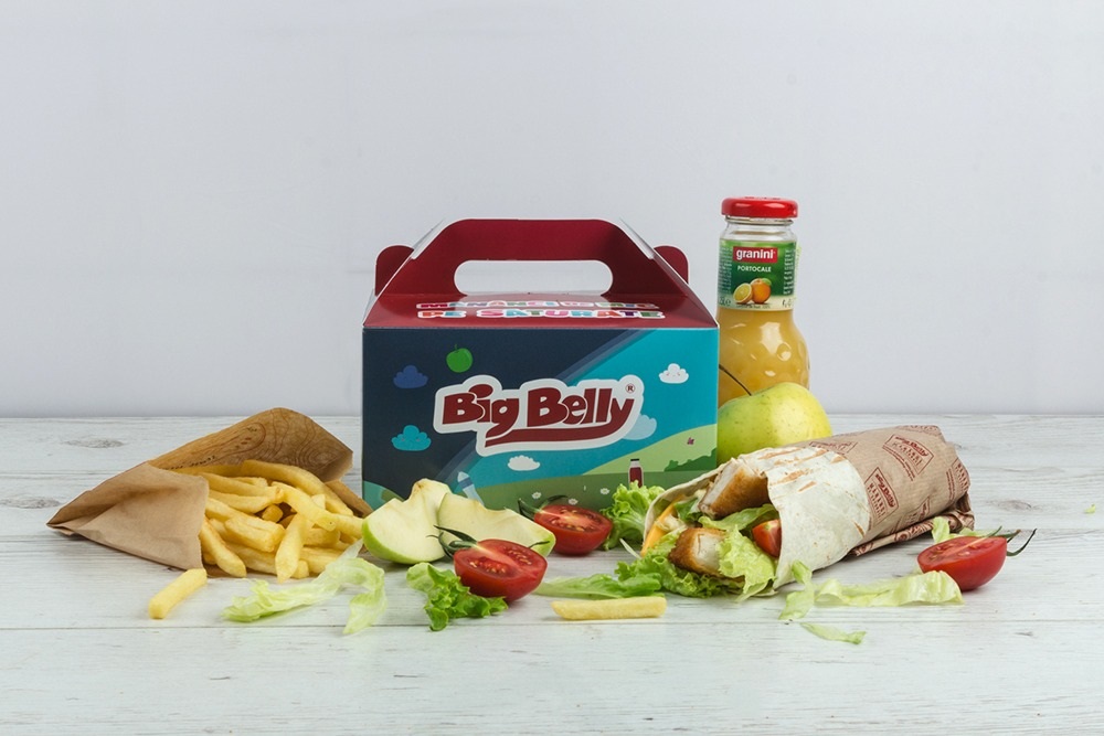 4 pieces chicken nuggets (90g), salad (30g), cheddar cheese (10g), cherry tomatoes (40g), french fries or rice with vegetables (100g), granini 0.25, apple, mayonnaise sauce, ketchup sauce Caloric calculation = 440 kcal
