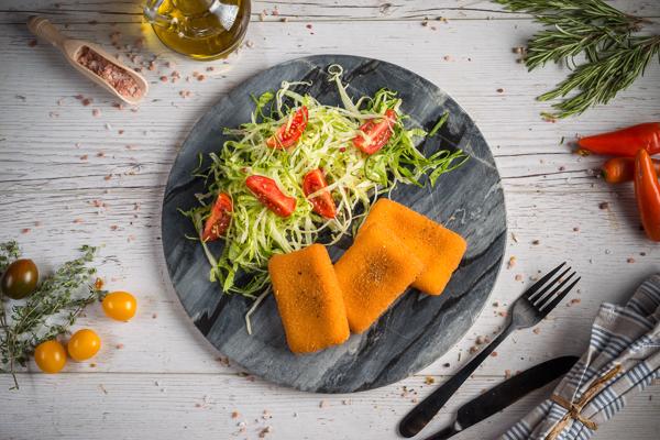 Ingredients: 3 pcs. Fried cheese - assorted salad: cabbage - tomatoes - cucumbers 450g e