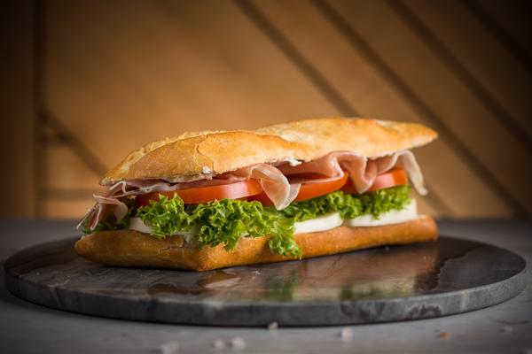 Ingredientes: ciabatta - butter cream - prosciutto crudo - mozzarella - salad - tomatoes 370g e